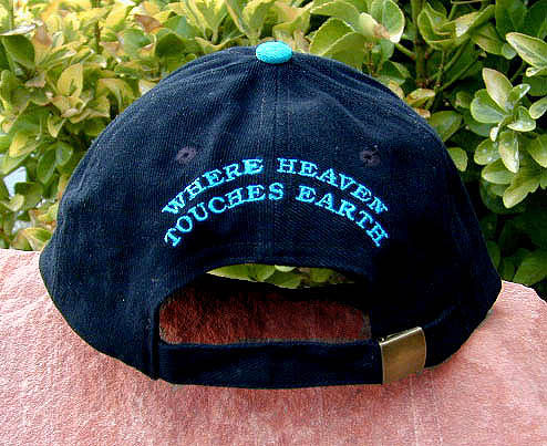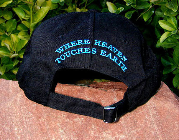 Heavy brushed black cotton hat with turquoise blue trim. Mid profile height, six panel construction, adjustable size. |
