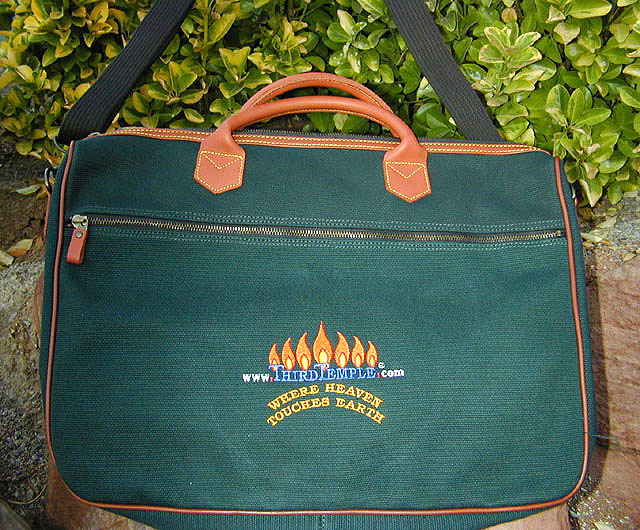 The ThirdTemple® Briefcase custom embroidered and made from the Highest Quality Cotton Canvas with Leather Trim and Heavy Metal Zippers. Shoulder Strap also included. |