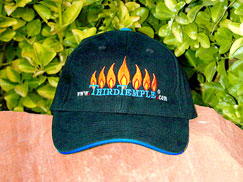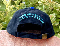 Heavy brushed black cotton hat with royal blue trim. Mid profile height, six panel construction, adjustable size. Order it! |