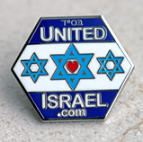 Let your Blue & White shine through! The United Israel® Lapel Pin allows you to share your love for Israel on a daily basis by wearing it proudly on your clothing or bag. It's symbolism is that people all over the world unite together to support Israel. 26mm x 23mm Order it! |